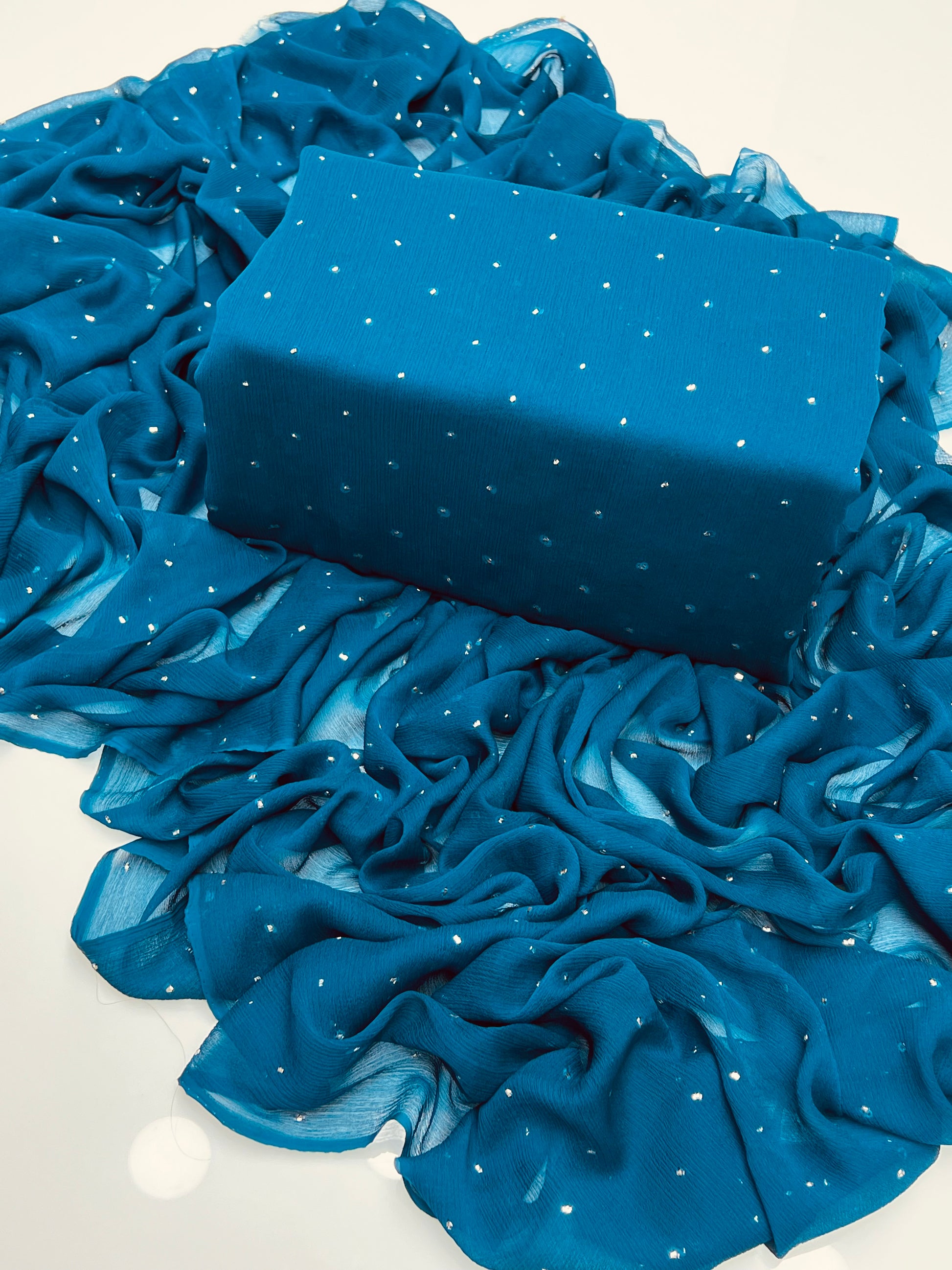 Handmade chatta mukesh work on soft krinkle shifoon full shirt jall with full jall dupatta 2pc suit…