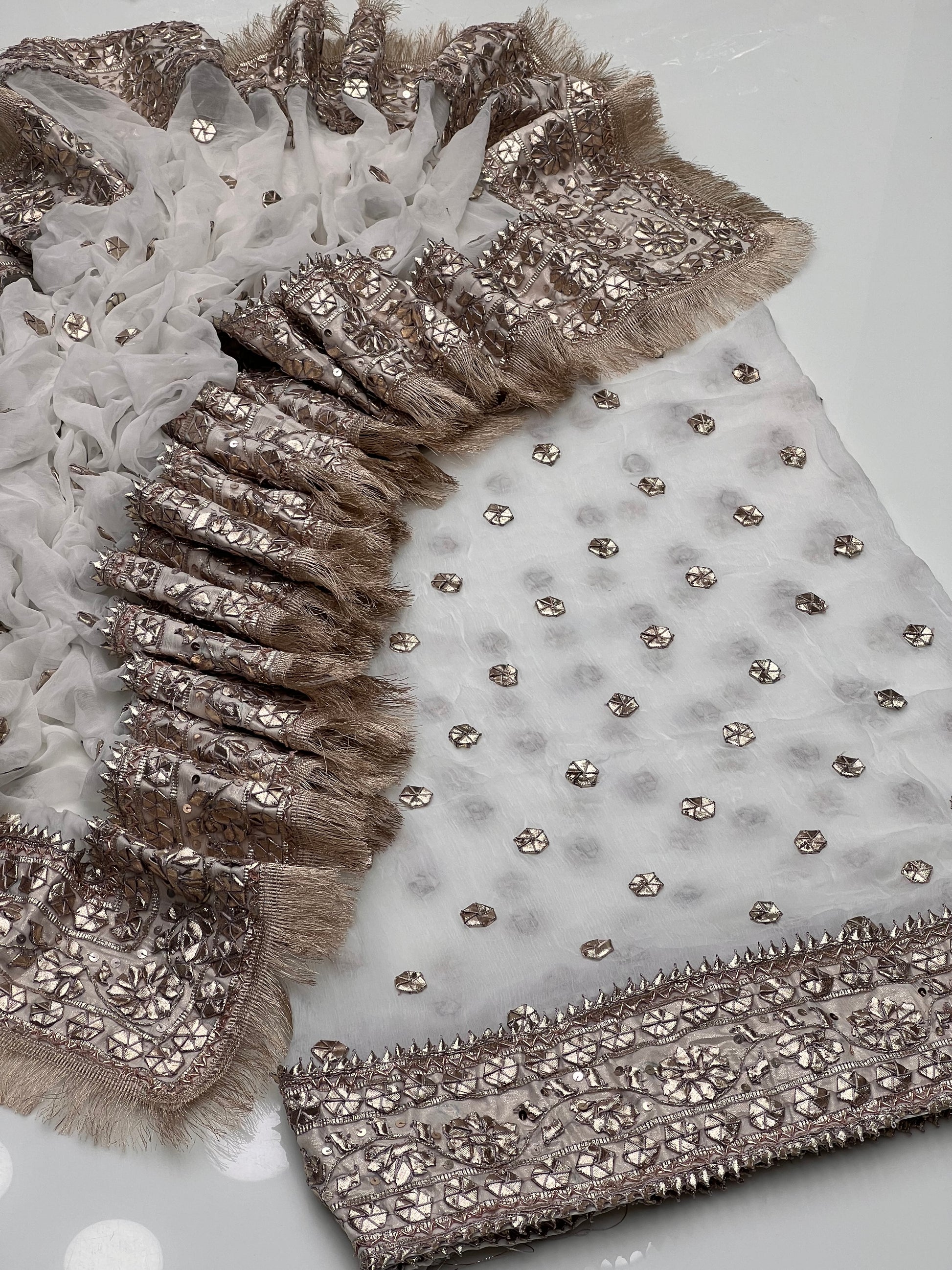 Handmade Lcd Gotta Work On Pure Bamber Shifoon Daman Style Shirt With 4 Sided Border Dupatta 2pc Suit…
