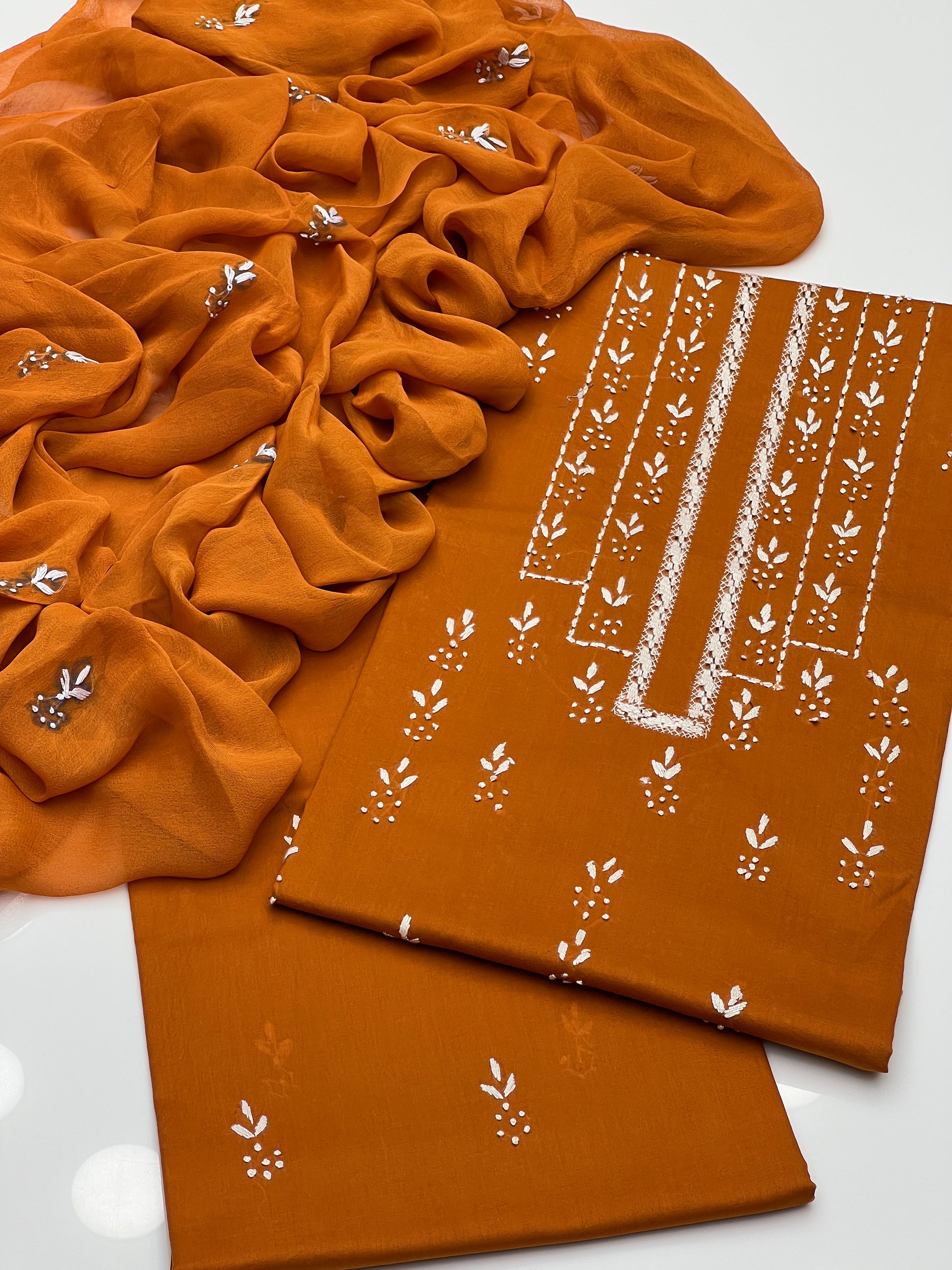 Handmade Pakka Tarkashi Tanka On Pure Lawn Gala Booti Shirt On Booti Work Shifoon Dupatta Along Embroidered Trouser 3pc Dress 👗